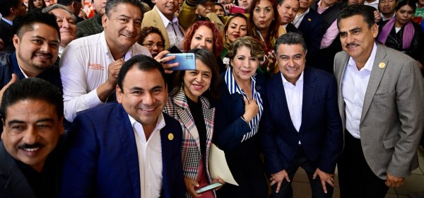 Ciudad de México, México.- La maestra Delfina Gómez Álvarez, gobernadora del Estado de México, acompañó al licenciado Andrés Manuel López Obrador, presidente de México, a