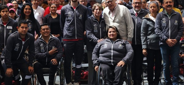 Toluca, Estado de México.- La Gobernadora del Estado de México, Delfina Gómez Álvarez, encabezó la ceremonia de abanderamiento de la delegación mexiquense que participará en