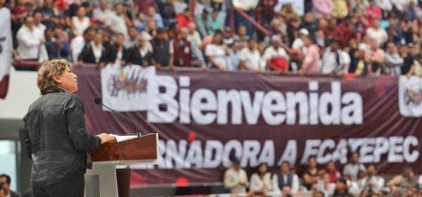 Ecatepec, Estado de México.- La gobernadora del Estado de México, Delfina Gómez Álvarez, encabezó la Mesa de Coordinación para la Construcción de la Paz en