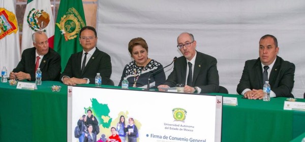 Atlacomulco, Estado de México, 14 agosto 2023.- El rector de la Universidad Autónoma del Estado de México (UAEMéx), Carlos Eduardo Barrera Díaz, signó convenios generales