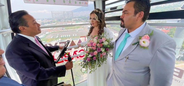 Tlalnepantla, Estado de México, 4 de agosto de 2023. Christian Gamboa y Octavio López, decidieron iniciar su trayecto como esposos en la estación Periférico de