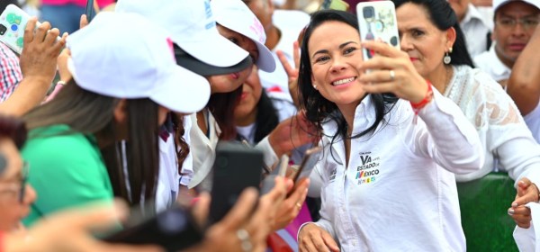 En la cuna del priismo mexiquense, Atlacomulco de Fabela, la candidata de la coalición Va por el Estado de México, Alejandra Del Moral Vela, presentó