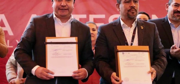 El alcalde Miguel Ángel Ramírez Ponce y Hugo Ernesto Cuéllar Carrera, director del Instituto Tecnológico de Toluca, suscribieron el Convenio Artesanal y Alianza Social y