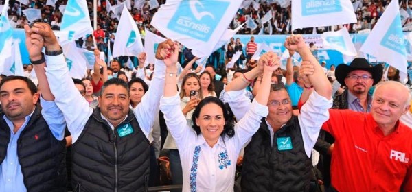 En un acto multitudinario, denominado por los organizadores como XII Asamblea Extraordinaria del Consejo Político Estatal, Alejandra Del Moral Vela rindió protesta como candidata a