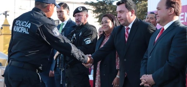 El presidente municipal de Lerma, Miguel Ángel Ramírez Ponce, entregó uniformes a 140 agentes de las direcciones de Seguridad Pública y de Tránsito y Vialidad