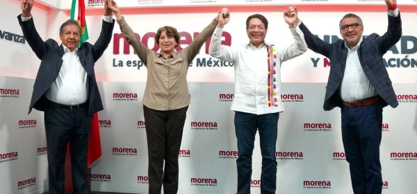 En conferencia de prensa, el dirigente nacional de Morena, Mario Delgado, ratificó a Delfina Gómez como precandidata única del partido guinda a la gubernatura del