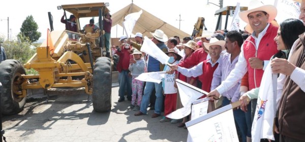 Ixtlahuaca, México; 31 de octubre de 2022. El presidente municipal, Abuzeid Lozano Castañeda y Mauricio Vázquez González, director general de la Junta de Caminos del