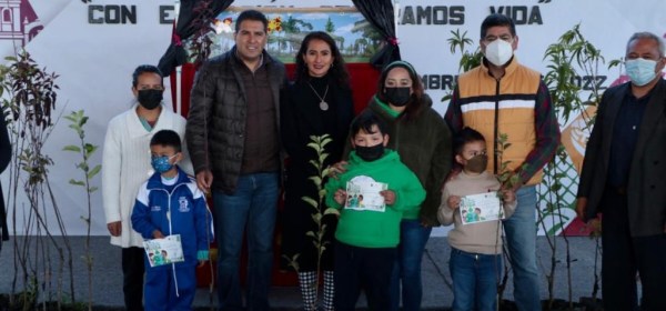 Ixtlahuaca, México; 27 de septiembre de 2022. El presidente municipal, Abuzeid Lozano Castañeda, puso en marcha el programa ambiental “Con Educación Sembramos Vida”, con el