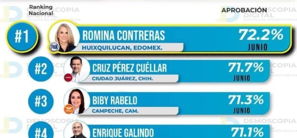 · La presidenta municipal de Huixquilucan también se ha mantenido como la mejor alcaldesa del Estado de México por seis meses consecutivos, desde que asumió