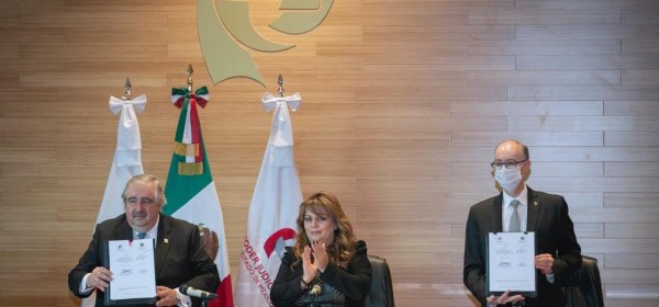 El rector de la Universidad Autónoma del Estado de México, Carlos Eduardo Barrera Díaz, y el magistrado presidente del Poder Judicial del Estado de México,