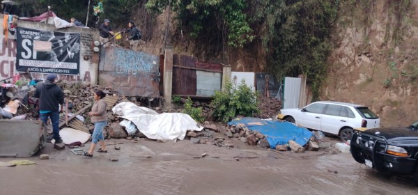 La intensa lluvia y granizada que se registró la tarde de hoy en Ecatepec, Estado de México, provocó el desgajamiento de la ladera, de unos