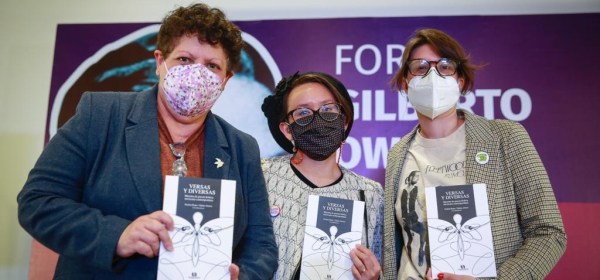 Odette Alonso Yodú y Paulina Rojas Sánchez, coordinadoras de Versas y diversas, presentaron, por primera vez de manera física, este libro en el Foro Gilberto