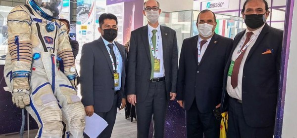 El rector de la Universidad Autónoma del Estado de México (UAEM), Carlos Eduardo Barrera Díaz, acudió a la inauguración de la Feria Aeroespacial México 2021