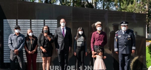 • En compañía de sus familiares, Rodrigo Martínez Celis Wogau recordó la noble labor de los tres policías, cuyos nombres quedaron inscritos en el muro
