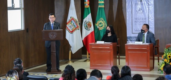 En representación del rector Carlos Eduardo Barrera Díaz, el secretario de Planeación y Desarrollo Institucional, José Raymundo Marcial Romero, encabezó el informe del director del