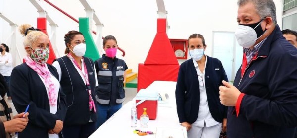 Por primera vez, desde el inicio de la pandemia, se observa a un titular de Salud supervisando la operación de un centro de vacunación, sin