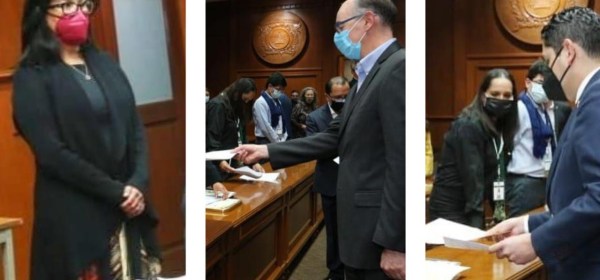 Los doctores Yolanda Eugenia Ballesteros Sentíes, Carlos Eduardo Barrera Díaz y Luis Raúl Ortiz Ramírez recibieron la tarde de este jueves el acta de registro