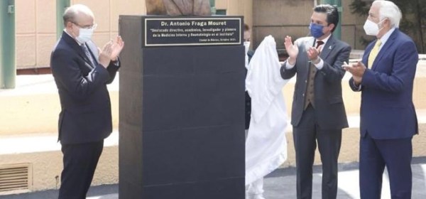 El Instituto Mexicano del Seguro Social (IMSS) hizo un homenaje al doctor Antonio Fraga Mouret y develó un busto con su nombre en la Plaza
