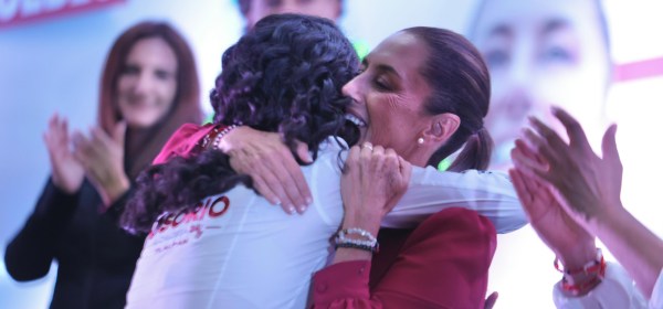 Tlalpan, Ciudad de México.- Claudia Sheinbaum, candidata presidencial de Morena, PVEM y PT, arropó a Gaby Osorio, candidata a la alcaldía de Tlalpan, durante el