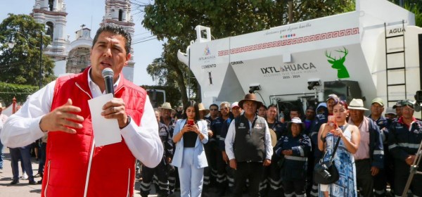 Ixtlahuaca, México; 28 de febrero de 2024. Para fortalecer la infraestructura de Ixtlahuaca, el presidente municipal, Abuzeid Lozano, entregó ocho nuevas unidades entre vehículos y
