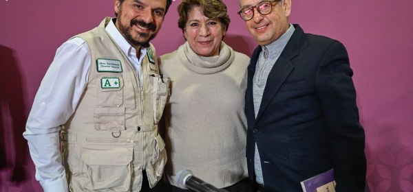 El director general del Instituto Mexicano del Seguro Social (IMSS), Zoé Robledo, y la gobernadora del Estado de México, Delfina Gómez Álvarez, así como sus
