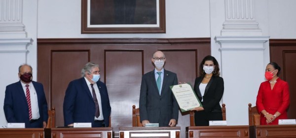 El rector de la UAEMéx, Carlos Eduardo Barrera Díaz, encabezó la ceremonia del Día de la Abogada y el Abogado y entregó reconocimientos a juristas