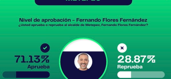 La casa de encuestas Poligrama, ubicó al alcalde de Metepec, Fernando Flores Fernández, en el octavo lugar a nivel nacional, con el 71.13% de aprobación