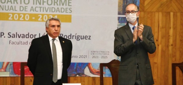 El rector de la UAEM, Carlos Eduardo Barrera Díaz, encabezó el cuarto informe anual de actividades del director de la Facultad de Medicina, Salvador López