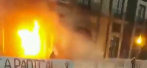 Un grupo de al menos 14 mujeres prendió fuego a la puerta principal de la Cámara de Diputados del Estado de México, en protesta a