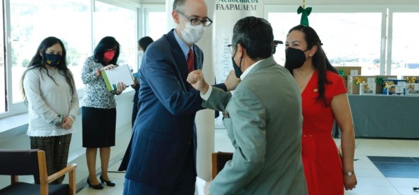 Durante el Gran Sorteo “Día del Maestro” de la FAAPAUAEM, el rector Carlos Eduardo Barrera Díaz exhortó al personal docente a vacunarse y reconoció su