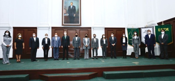 El rector de la Universidad Autónoma del Estado de México, Carlos Eduardo Barrera Diaz, presentó a los integrantes del gabinete universitario que lo acompañará en