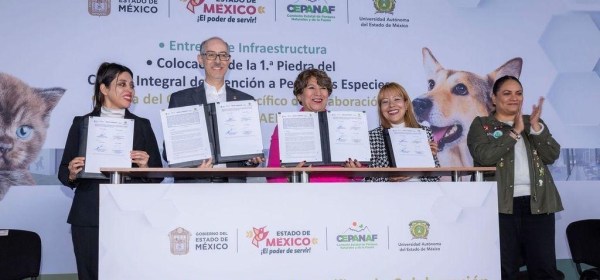 Texcoco, Estado de México, 23 junio 2024.- La gobernadora del Estado de México, Delfina Gómez Álvarez, y el rector de la Universidad Autónoma del Estado